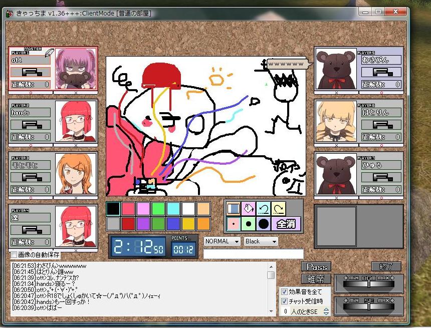 絵ちゃっと?ゲームで、順番にお題にそって絵を描いて